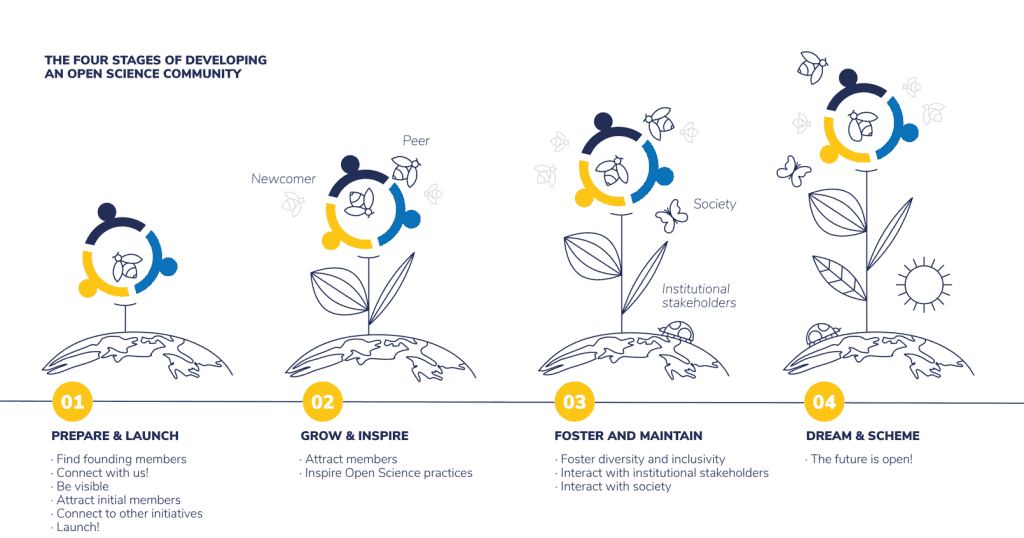 Open Science Communities provide a place where newcomers and experienced peers interact, inspire each other to adopt Open Science practices and values, identify opportunities […] By creating momentum and critical mass, Open Science Communities usher in a cultural change towards Open Science. You can be part of this!