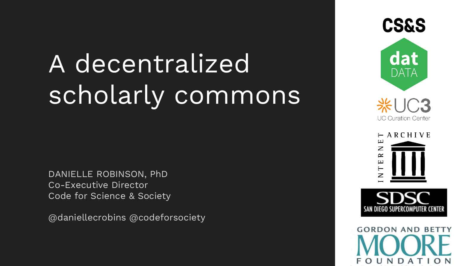 Presentation Danielle Robinson, Cs&S ‘A Decentralized Scholarly Commons’. 11 October 2018. https://doi.org/10.5281/zenodo.1458149.